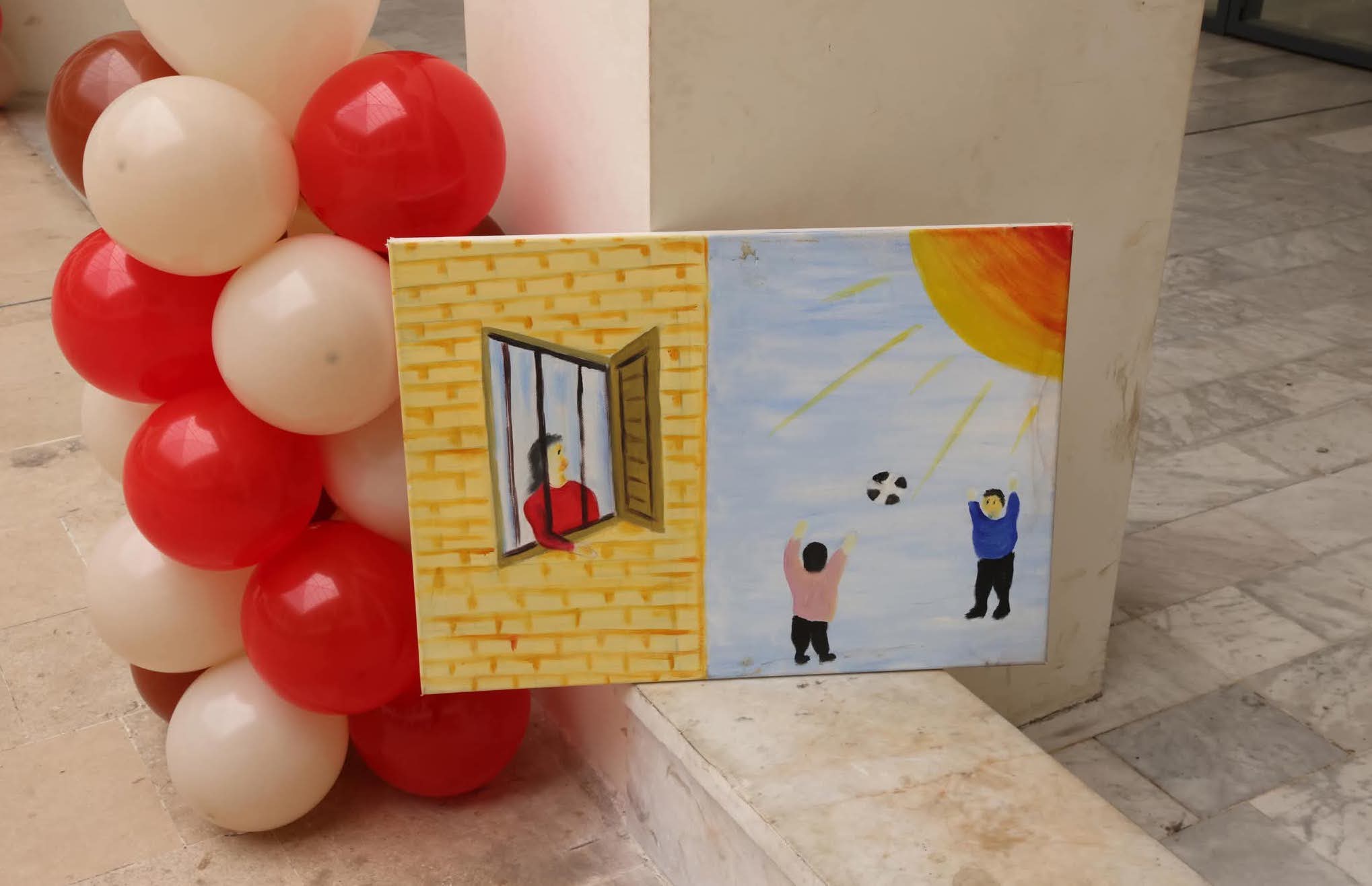 ترافقت عروض اللوحات مع تنسيق بالونات ملوّنة تدربت السجينات على تقنيتها على يد أخصائية فنية، بحسب بدرة.