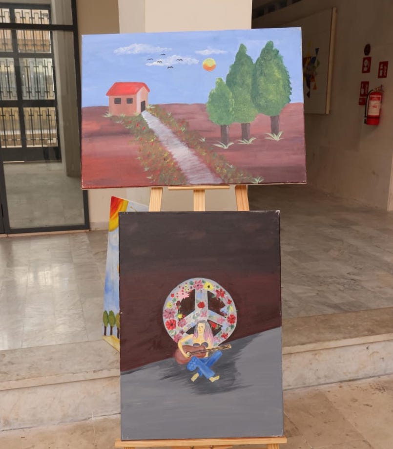 سجينة رسمت سيدة مُصَفّدة تمد يديها للقاضي كأنها تطالبه بمحاكتها، أو إطلاق سراحها، ولوحة رفعت شعار السلام، ومنهن من عبّرن عن الندم الذي يرافق كل سجين بعد وقوع حدث خطأه.