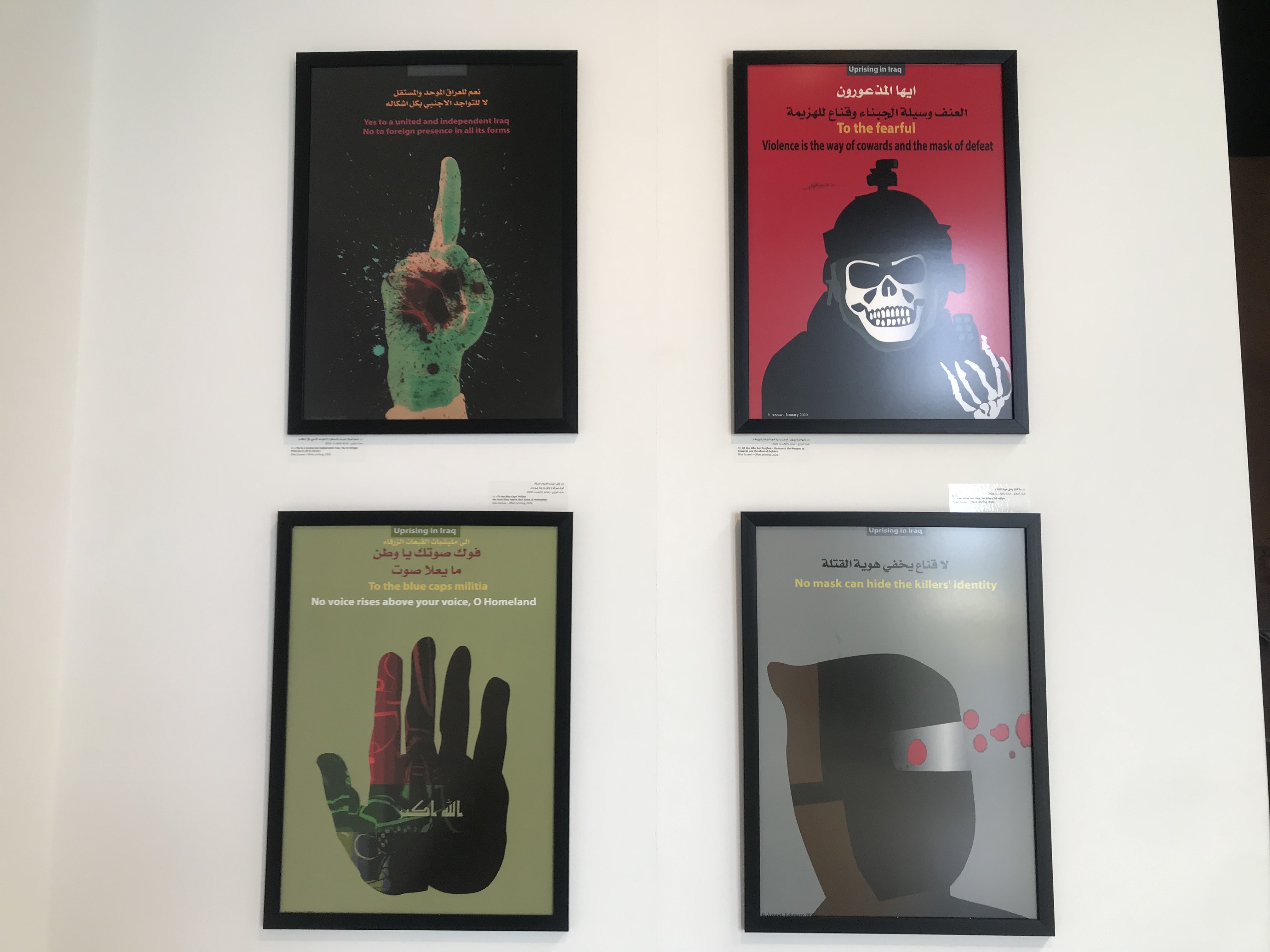 أربعة ملصقات تدعو إلى عراق موحد ومستقل، من تصميم ضياء العزاوي، منها "لا قناع يخفي هوية القتلة"، و" أيها المذعورون: العنف هوية الجبناء"، و"لا للتواجد الأجنبي بكل أشكاله".