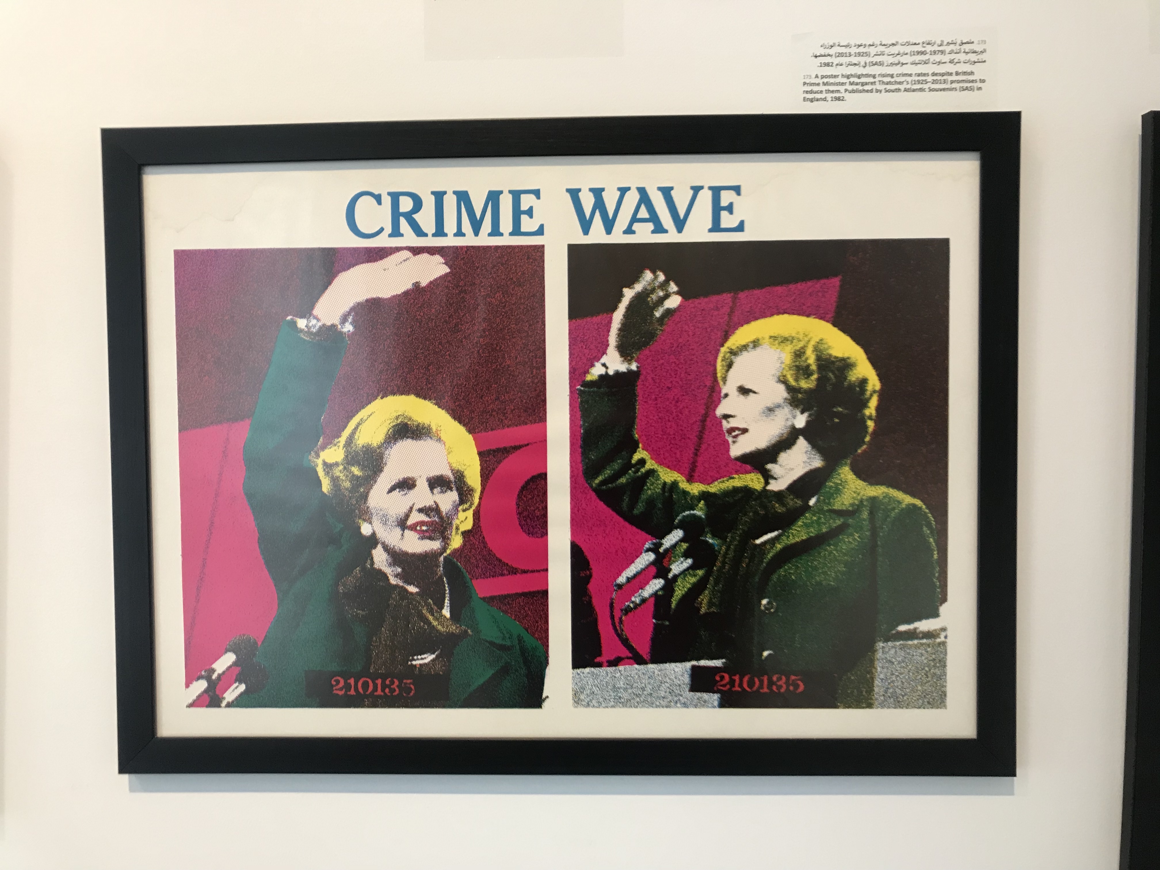 ملصق الجريمة المتزايدة في بريطانيا، وبدت فيه تاتشر رافعة اليد، مع رقم يرمز لعدد الجرائم زاد عن مائتي ألف حادث.