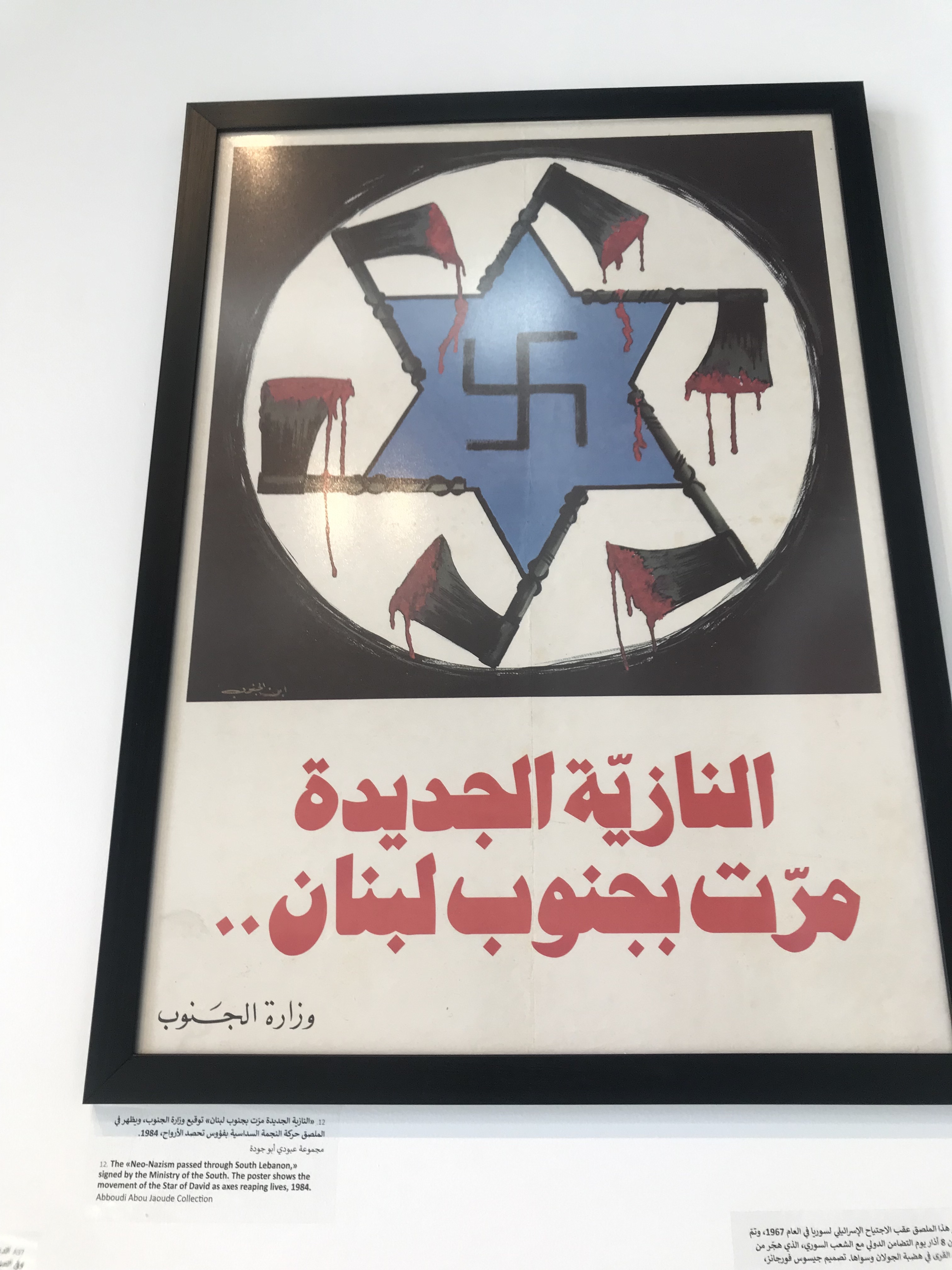 تظهر في بعض الملصقات بصمات الحرب الأهلية اللبنانية، ووقائعها، وتداعياتها على السلم الأهلي، علماً أن المتحف اقتنى بقايا بوسطة عين الرمانة كرمز للحرب الأهلية اللبنانية.